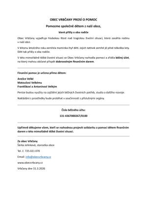 Sbírka na pomoc rodině v těžké životní situaci.