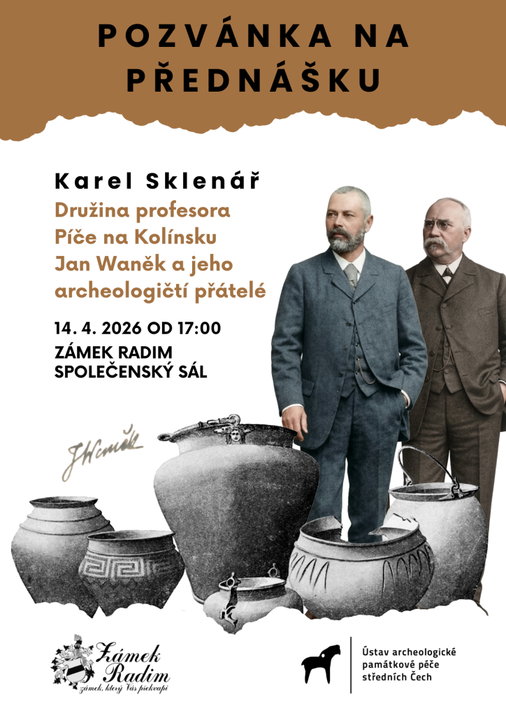 Zveme vás na přednášku s názvem "Družina profesora Píče na Kolínsku". Přednáška se uskuteční 14. dubna 2026 od 17:00 ve společenském sále Zámku Radim. Akce je pořádána Ústavem archeologické památkové péče středních Čech ve spolupráci se Zámkem Radim a je skvělou příležitostí pro všechny zájemce o historii a archeologii našeho regionu.